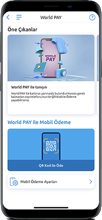 - Veya uygulamaya giriş yaptıktan sonra Benim Dünyam menüsünden World Pay’i seçtikten sonra “QR Kod ile Öde”ye tıklayarak